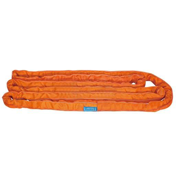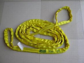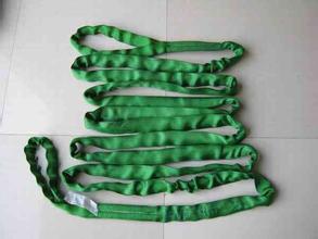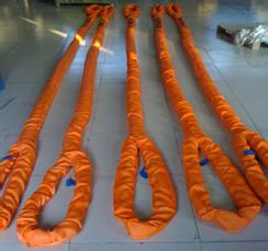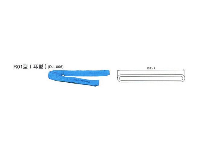 圓型吊裝帶是一種穿繩及其外部包覆保護套的環形柔性吊裝帶。吊裝帶穿繩和保護套都采用聚酯工業長絲織成,帶體為閉合環體,負載強度高,適宜采用兜吊或垂直吊等吊裝帶使用方法起吊大型設備,是港口起重機、液壓龍門吊和工業行車常用的起重吊索具。