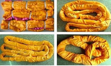 圓形吊裝帶也叫柔性吊裝帶,其材質為滌綸絲。該款吊裝帶相比于扁平吊裝帶來說其柔韌度較高,承載力較強,安全系數也較高。