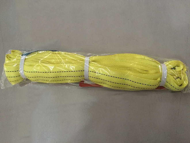 咨詢電話:13933276606 產品名稱:兩頭扣柔性吊裝帶8T(又稱眼對眼柔性吊裝帶、雙扣柔性吊裝帶或雙扣穿芯吊裝帶); 規格型號:本吊裝帶采用單層、雙層或三層聚酯編織帶制成,兩邊設有眼對眼吊扣。帶體厚度在25mm-300mm之間,載荷范圍是1T-36T,可滿足您的不同吊裝載荷